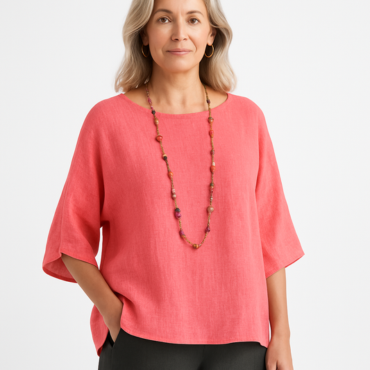 Casual Linnen Top Til Kvinder - Letvægts, 3/4 Ærmer, Stilfuld Og Komfortabel