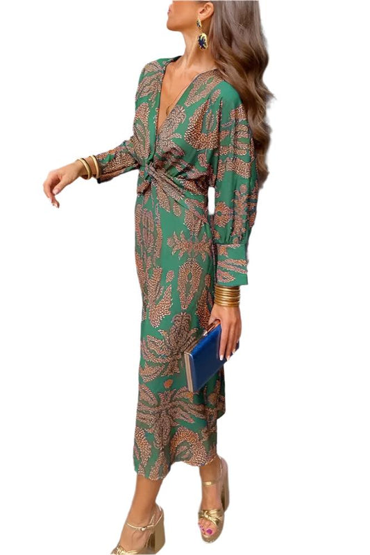 ISABELLE – Elegant V-Hals Kjole med Feminine Detaljer